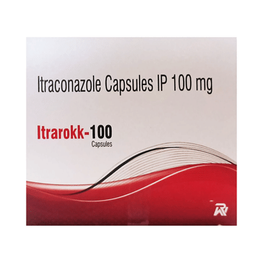Itrarokk 100 Capsule is used to treat fungal infections caused by Trichophyton spp., Microsporum spp., and Epidermophyton floccosum. The infections caused could be ringworm infection, infection of feet, or infection in groin and buttocks. This medicine also treats persistent infection of fingernails and toenails, persistent candida (yeast) infections of vagina or candida (yeast) infections of the mouth or throat in patients with lower resistance to disease. It is also used in the treatment of cryptococcal infection and infections caused by histoplasma, aspergillus and blastomyces.