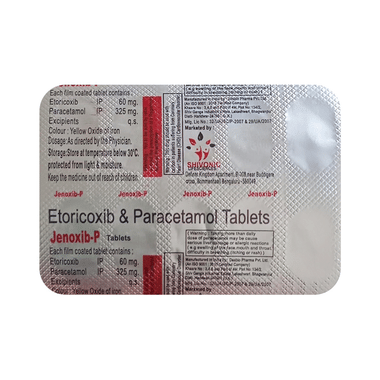 Jenoxib-P Tablet is a pain-relieving medicine. It is used to reduce pain and inflammation in conditions like rheumatoid arthritis, ankylosing spondylitis, and osteoarthritis. It may also be used to relieve muscle pain, back pain, toothache, or pain in the ear and throat.