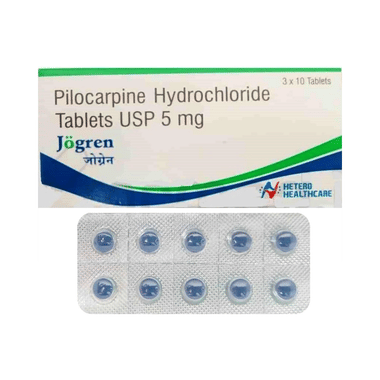 Jogren 5mg Tablet is used to treat dry mouth in radiation treatment for head and neck cancer, and in Sjögren’s syndrome (an autoimmune condition manifesting dry mouth). It helps stimulate and increase saliva production in the mouth providing relief from dryness.