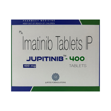 Jupitinib 400 Tablet is also used for treatment of a skin tumor called dermatofibrosarcoma protuberans and a type of bone marrow condition called aggressive systemic mastocytosis. The medicine should be taken with food. Take it at the same time each day to get the most benefit. Continue taking it as long as your doctor advises for it. The duration of treatment varies according to your need and response to treatment. Taking it in the wrong way or taking too much can cause very serious side effects. It may take several weeks or months for you to see or feel the benefits but do not stop taking it unless your doctor tells you to.