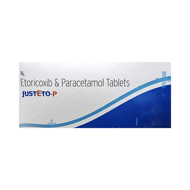 Justeto-P Tablet is a pain-relieving medicine. It is used to reduce pain and inflammation in conditions like rheumatoid arthritis, ankylosing spondylitis, and osteoarthritis. It may also be used to relieve muscle pain, back pain, toothache, or pain in the ear and throat.