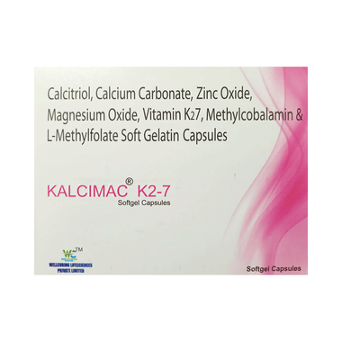 Find out detailed description, uses, directions of use, side effects, warnings and precautions, frequently asked questions about Kalcimac K2-7 Softgel Capsule