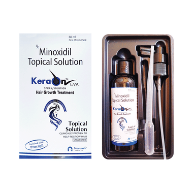 Keraon Eva Spray/Solution should only be applied directly to the scalp area in the amount and in the way specified on the label or by your doctor. Immaculate and dry your scalp before using it. It may take approximately 2- 4 months to notice any hair growth. The first growth may be soft, colourless, and barely visible. Using more than recommended will not speed up hair growth and may increase the likelihood of side effects. This medication must be used continuously to maintain hair growth. Tell your doctor if your condition does not improve or worsen after using it for 4 to 6 months.
