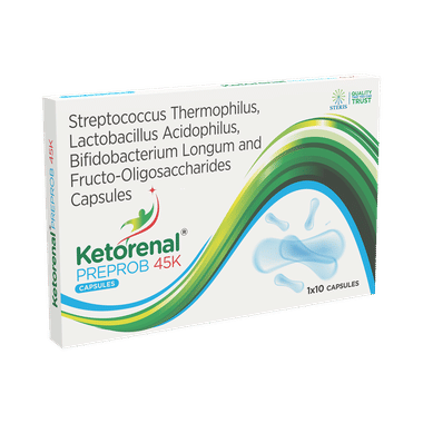 Take Ketorenal Preprob 45K Capsule in the dose and duration as prescribed by your doctor, as taking more than the recommended dose may cause undesirable side effects. Also, it is advised to take this medicine at a fixed time to avoid missing a dose.