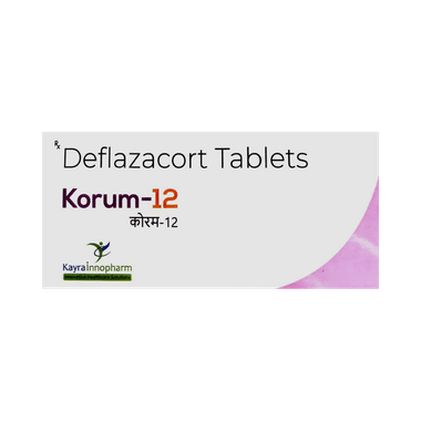 Korum 12 Tablet is a steroid medicine also known as glucocorticoids which occur naturally in the body. The medicine works by reducing the inflammation which helps in treating many illnesses caused due to active inflammation. Also, it stops the reactions known as autoimmune reactions which occur when your body's immune system attacks the body itself and causes damage.