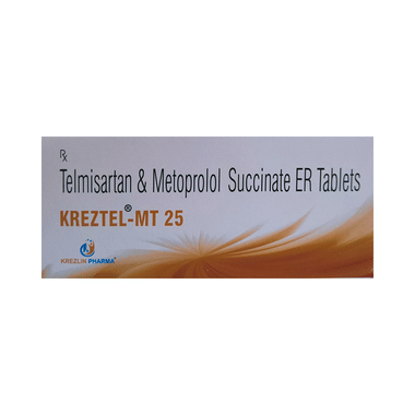 It is advised to take Kreztel-MT 25 Tablet ER with food at a fixed time each day to maintain consistent levels of medicine in the blood. Retain taking it for as long as advised by your doctor. Even if you feel well, do not stop this medicine on your own because high blood pressure often has no symptoms. If you stop taking it, your condition may get worse. Retaining active with regular exercise, reducing your weight and eating a healthy diet will also help control your blood pressure. Follow your doctor’s advice while taking this medicine.