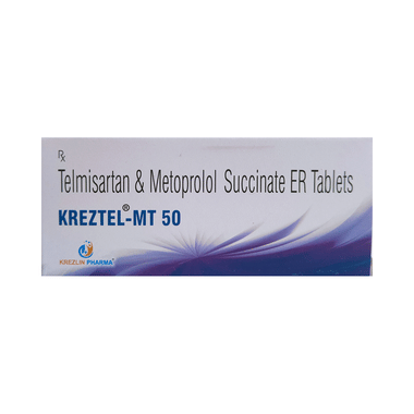 It is advised to take Kreztel-MT 50 Tablet ER with food at a fixed time each day to maintain consistent levels of medicine in the blood. Retain taking it for as long as advised by your doctor. Even if you feel well, do not stop this medicine on your own because high blood pressure often has no symptoms. If you stop taking it, your condition may get worse. Retaining active with regular exercise, reducing your weight and eating a healthy diet will also help control your blood pressure. Follow your doctor’s advice while taking this medicine.