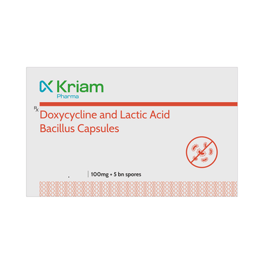 Kriam Pharma Doxycycline and Lactic Acid Bacillus Capsule is a combination of two medicines: Doxycycline and Lactobacillus. Doxycycline is an antibiotic medicine belonging to the class called "tetracyclines”. It is used to treat bacterial infections in many different parts of the body. On the other hand, Lactobacillus is a live microorganism which restores the balance of good bacteria in the intestine that may get upset with the use of antibiotics.