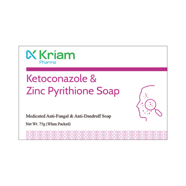 Kriam Pharma Ketoconazole & Zinc Pyrithione Soap is only meant for external use and should be used as your doctor advises. A thin layer of the medicine should be applied only to the affected areas of the skin with clean and dry hands. Wash your hands before and after the application of the medicine. If it gets into your eyes, nose, or mouth, rinse with water. It may take several days to weeks for your symptoms to improve, but you should keep using this medicine regularly. The course of the treatment should be completed to ensure better efficacy of the medicine.