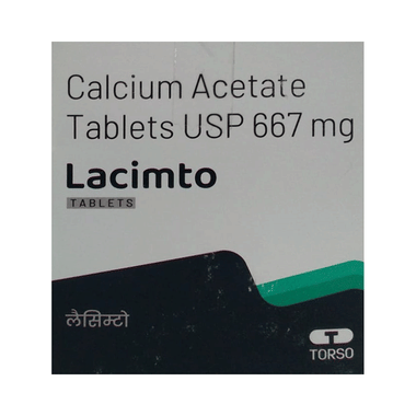 Lacimto Tablet is a medicine used to treat high phosphate levels in the blood. It helps to lower the phosphate levels in the blood and prevents complications, particularly in people with kidney failure who are on dialysis and are unable to get rid of excess phosphate levels.