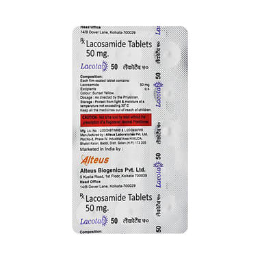 Lacotab 50mg Tablet may be taken with or without food, preferably at the same time, each day. If you have missed a dose, take it as soon as you remember as it can be life-threatening in some cases, so it is better to keep an extra stock always to avoid a missed dose. You should finish the full course of treatment even if you feel better and always consult your doctor before stopping this medicine as it may increase seizure frequency. Inform your doctor if you have any heart-related problems, before starting your treatment with this medicine.