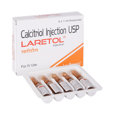 Laretol 1mcg Injection is the active form of vitamin D. It increases the levels of vitamin D in your blood, which helps increase calcium levels in the blood by increasing the absorption rate of calcium from your intestine. Thus, it is used to replenish blood calcium levels.