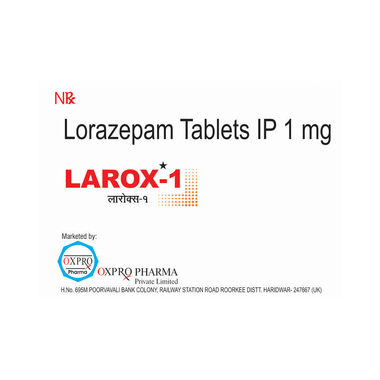 Larox 1 Tablet is a prescription medicine used to treat anxiety disorders such as generalized anxiety disorder (excessive worry or restlessness), obsessive-compulsive disorder (OCD), panic attacks, and social phobias. It is also used for the short-term relief of the symptoms of anxiety.