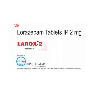 Larox 2 Tablet is a prescription medicine used to treat symptoms of short term anxiety and anxiety disorders. It helps to decrease the abnormal and excessive activity of the nerve cells and calms the brain.