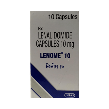 Lenome 10 Capsule belongs to a group of medicines that affect how your immune system works. $It is used in the treatment of multiple myeloma and myelodysplastic syndrome.