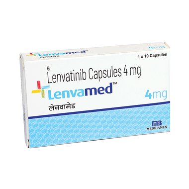 Lenvamed 4mg Capsule is used to treat certain types of cancers like differentiated thyroid cancer, liver cancer, kidney cancer, and endometrial cancer. It works by blocking specific proteins that promote cancer cell growth and spread, and reducing tumor size in affected individuals.