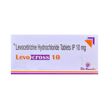 Levocross 10 Tablet belongs to a group of medicines called antihistamines. It is used to treat various allergic conditions such as hay fever, conjunctivitis, some skin reactions such as eczema, hives, and reactions to bites and stings. It also relieves watery eyes, runny nose, sneezing, and itching.