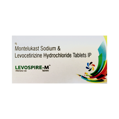 Levospire-M Tablet is a combination medicine used in the treatment of allergic symptoms such as runny nose, stuffy nose, sneezing, itching, swelling, watery eyes, and congestion or stuffiness. It also reduces inflammation in the airways and makes breathing easier.
