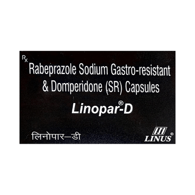Linopar-D Capsule SR is a combination of two medicines: Domperidone and Rabeprazole. This combination is used to treat acidity and heartburn or gastroesophageal reflux disease (GERD); a condition where the acid in the stomach flows back up into the food pipe (esophagus). It is also used to treat gastric and duodenal ulcers. Domperidone helps to control vomiting by increasing the movement of the gut, allowing the food to move more easily through the stomach.