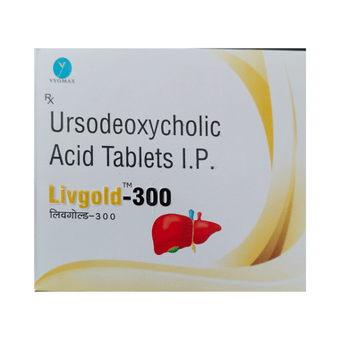 Livgold 300 Tablet is a medicine used to dissolve certain gallstones and prevent them from forming. It helps break down the cholesterol that has converted into stones in your gallbladder, thereby dissolving the stones. It is also used to treat a type of liver disease called primary biliary cirrhosis.