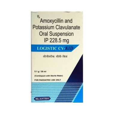 Logistic CV-Kid Oral Suspension is an antibiotic medicine that helps treat bacterial infections of the ear, nose, throat, chest, lungs, teeth, skin, and urinary tract. It is capable of killing bacteria that have become resistant to other therapies and thus also helps treat tuberculosis that is resistant to other treatments.