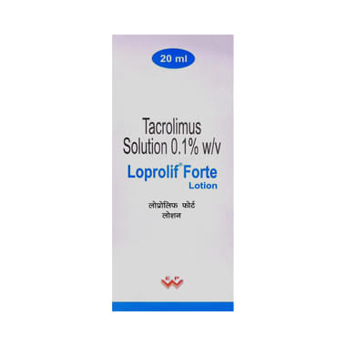 Loprolif Forte 0.1% Lotion is a medicine that modulates the immune system. It works on the immune system and mostly decreases its activity. It is used to treat moderate to severe eczema (atopic dermatitis) in adults who do not respond to steroids or develop side effects on using them. In atopic dermatitis, the skin’s immune system undergoes an overreaction and causes skin inflammation leading to itchiness, redness and dryness. Loprolif Forte 0.1% Lotion acts on the abnormal immune response and alters it, thereby relieving the skin inflammation and itchiness.