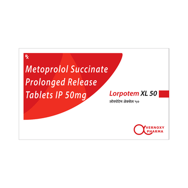 Lorpotem XL 50 Tablet may be prescribed alone or together with other medications. The dose and frequency will depend on what you are taking it for and the severity of your condition. It may be taken on an empty stomach or with a meal, but take it regularly at the same time each day to get the maximum benefit. It may take several weeks before you get the full benefit of this medicine, and you may need to take it for the rest of your life. However, it is important to continue taking it even if you feel well. Most people with high blood pressure do not have symptoms. If you stop taking it, your condition may worsen.