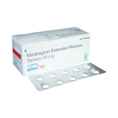 Lupin Mira 50 Tablet ER is used to treat symptoms of overactive bladder that includes increased or frequent urination, urgent need to urinate and inability to control urination. It helps to relax the muscle surrounding the bladder and increase it's ability to store urine.