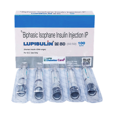 Find out detailed description, uses, directions of use, side effects, warnings and precautions, frequently asked questions about Lupisulin M 50 Solution for Injection 100IU/ml