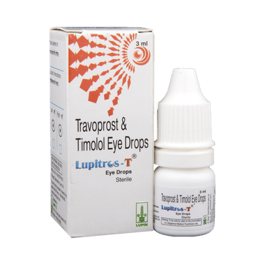 Lupitros-T Eye Drop has a combination of two medicines used to treat glaucoma and ocular hypertension. It decreases the fluid (aqueous humor) production in the eye, which relieves the pressure in the eye.Lupitros-T Eye Drop is to be used only in the affected eye. Employ it in the dose and duration as advised by the doctor. Wash your hands before using this medicine. Check the label thoroughly for directions before use. Do not skip any doses and finish the full course of treatment even if you feel better.