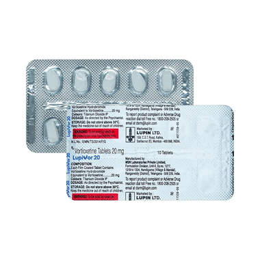Lupivor 20mg Tablet is a medicine prescribed to treat depression in adults. It belongs to a group of antidepressants known as serotonin modulator and stimulator (SMS). This medication helps to improve mood and energy levels, and reduce sadness and feelings of worthlessness in people with depression.