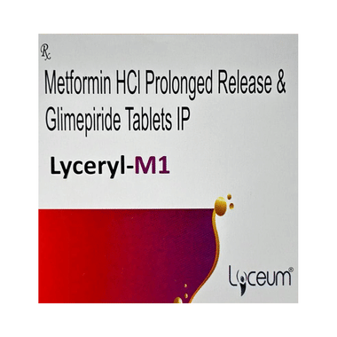 Lyceryl-M 1 Tablet PR is a combination of two medicines: glimepiride and metformin. This medicine is used in the treatment of type 2 diabetes mellitus (DM). It improves blood glucose levels in adults when taken along with a proper diet and regular exercise. Glimepiride lowers the blood glucose levels by increasing the release of insulin from the pancreas. Metformin works by lowering glucose production in the liver and improving insulin sensitivity. This combination is not indicated for the treatment of type 1 DM.