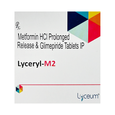 Lyceryl-M 2 Tablet PR is a combination of two medicines: glimepiride and metformin. This medicine is used in the treatment of type 2 diabetes mellitus (DM). It improves blood glucose levels in adults when taken along with a proper diet and regular exercise. Glimepiride lowers the blood glucose levels by increasing the release of insulin from the pancreas. Metformin works by lowering glucose production in the liver and improving insulin sensitivity. This combination is not indicated for the treatment of type 1 DM.