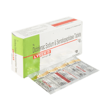 Lyser D Tablet is a combination of two medicines: Diclofenac and Serratiopeptidase. This medication helps in relieving pain and inflammation. It works by lowering the levels of chemical substances in the body that cause pain and inflammation.