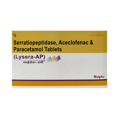 Lysera-AP Tablet is a combination medicine that relieves muscle, joint, and postoperative pain. It effectively alleviates pain and inflammation in conditions like rheumatoid arthritis, ankylosing spondylitis, and osteoarthritis.