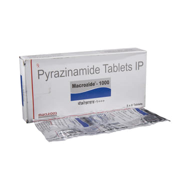 Macrozide 1000 Tablet is given in combination with at least one other tuberculosis medicine. It acts by killing the causative bacteria. It should be used in the dose and duration as advised by your doctor. This medicine may be taken with or without food, preferably at a fixed time every day to avoid a missed dose. Do not skip any doses and finish the full course of treatment even if you feel better. Stopping it early can result in treatment failure and increase the side effects too. Please let your doctor know about any changes in your weight as the dose of this medicine depends on the overall body weight of a person. Any changes in weight might need dose modification.