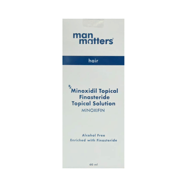 Man Matters Minoxidil 5% with Finasteride Solution I Prevent Hair Loss & Thinning Alcohol Free with Enriched Procapil is a combination medicine used in the treatment of hair loss in men. It works by increasing blood flow to the hair follicles, which further prevents hair loss and stimulates re-growth, resulting in longer, thicker, and increased numbers of hair.Employ Man Matters Minoxidil 5% with Finasteride Solution I Prevent Hair Loss & Thinning Alcohol Free with Enriched Procapil in the dose and duration as prescribed by your doctor or as instructed on the label. Immaculate and dry your scalp before using it. It may take several months before you notice any hair growth. The first growth could be soft, colorless, and barely visible. Employ it in the exact dose and duration as prescribed by your doctor. Using more than recommended will not speed up hair growth and may increase the likelihood of side effects. Employ it for as long as the doctor has prescribed to maintain proper hair growth. This medicine is to be used only by men and is not indicated in women.