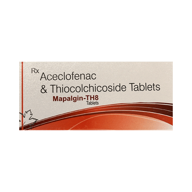 Mapalgin-TH8 Tablet is a combination of two medicines: Aceclofenac and Thiocolchicoside. This medication helps in relieving muscle pain. It relaxes the muscles by acting on the central nervous system and lowering chemical substance in the body that cause pain and inflammation.