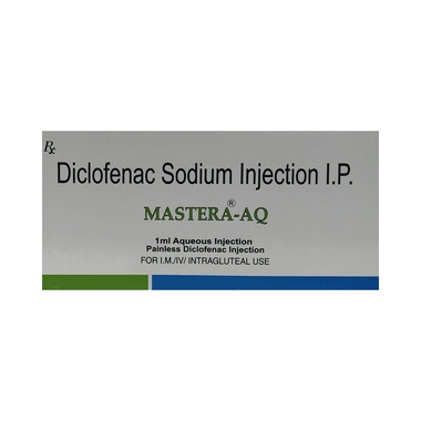 Mastera-AQ Injection is a pain-relieving medicine. It is used to treat various types of pain, swelling, stiffness, and joint pain in conditions like rheumatoid arthritis, osteoarthritis, and acute musculoskeletal injuries. It is given in cases where oral administration is not possible.