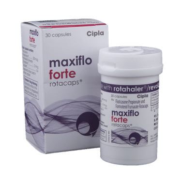 Maxiflo Forte Rotacap is used in the treatment of asthma (wheezing and shortness of breath) and chronic obstructive pulmonary disorder (a lung disorder in which the flow of air to the lungs is blocked). It relaxes the muscles of the air passages and makes it easier to breathe.Your doctor will tell you how often to use this inhaler and prescribe the lowest dose needed to keep your asthma under control. This medicine must be used regularly, even when you do not have symptoms, as it helps prevent breathing problems and reduces the risk of asthma flare-ups. The full benefit may take a few weeks of regular use. This inhaler is not intended to relieve sudden asthma symptoms, always keep a fast-acting reliever inhaler available for immediate relief. Correct inhaler technique is important to ensure the medicine reaches the lungs and works effectively.