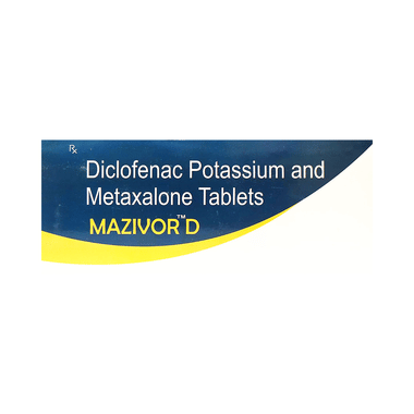 Mazivor D Tablet is a combination of two medicines: Diclofenac and Metaxalone. This combination helps to relieve muscle pain. It works by relaxing muscles by acting on central nervous system and lowering chemical substance in the body that causes pain and inflammation.