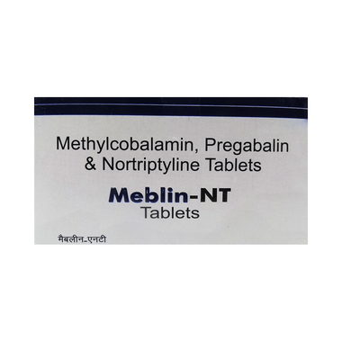 Meblin-NT Tablet is a combination of three medicines: pregabalin, nortriptyline, and methylcobalamin. This medicine is useful in the treatment of nerve pain (neuropathic pain). This medicine calms the damaged or overactive nerves by acting on brain, thereby decreasing the pain sensation. It also helps in the regeneration of damaged nerves in the body.