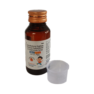 Mecbles Junior Syrup Strawberry Alcohol Free is used to treat cough with mucus (wet or productive cough). It helps thin and loosen phlegm so it can be coughed out more easily and also relaxes the airway muscles to improve breathing. It contains ambroxol, a mucolytic that thins mucus; guaifenesin, an expectorant that reduces mucus stickiness; and levosalbutamol, a bronchodilator that relaxes airway muscles. Because it works by clearing mucus, it is usually not recommended for dry cough where little or no phlegm is present. Employ it only as advised by a doctor.