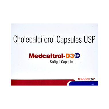 Medcaltrol-D3 60K Softgel Capsule is used in the treatment of vitamin D deficiency and osteoporosis. It helps the body to absorb calcium. Calcium is essential for maintaining strong and healthy bones. It is used when your diet does not provide enough calcium.