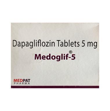 Medoglif 5 Tablet is used alone or in combination with other medicines to treat type 2 diabetes mellitus. It helps control the high blood sugar levels seen in diabetes. This reduces the chances of serious complications of diabetes and also helps prevent heart disease.Medoglif 5 Tablet can be taken with or without food at any time of day, but you should try to take it at the same time every day. The dose will be decided by your doctor. Do not stop taking it without asking your doctor. If you do, your blood sugar levels may increase and put you at risk of serious complications like kidney damage and blindness. This medicine is only part of a treatment program that should include a healthy diet, regular exercise, and weight reduction as advised by your doctor.