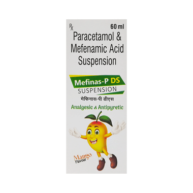 Mefinas-P DS Oral Suspension Mango is a combination of two medicines. It is used in the treatment of fever. It is also useful for the treatment of mild to moderate pain of various conditions like headache, body ache, and toothache.