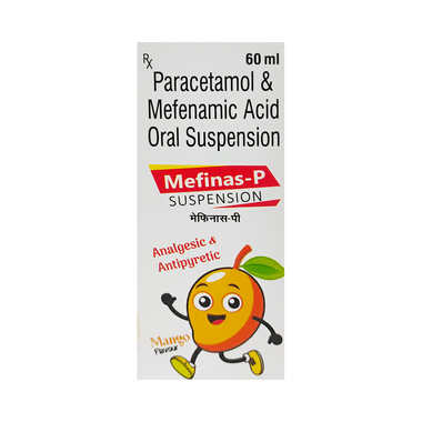 Mefinas-P Oral Suspension Mango is a combination of two medicines. It is used in the treatment of fever. It is also useful for the treatment of mild to moderate pain of various conditions like headache, body ache, and toothache.