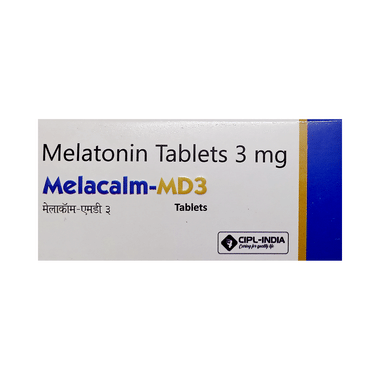 Melacalm-MD3 Tablet is a medicine used in the treatment of insomnia and jet lag (a sleep disorder due to frequent travel to different time zones). It reduces jet lag symptoms such as irritability, indigestion, daytime tiredness, and sleep disturbances.