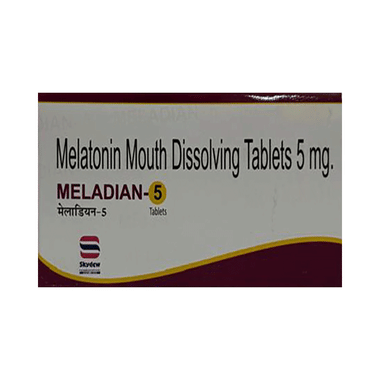 Meladian 5 Tablet MD is a medicine used in the treatment of insomnia and jet lag (a sleep disorder due to frequent travel to different time zones). It reduces jet lag symptoms such as irritability, indigestion, daytime tiredness, and sleep disturbances.