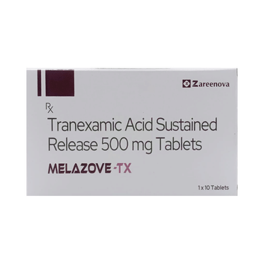 Melazove TX 500 Tablet SR is used to treat bleeding. It helps to prevent or reduce bleeding in conditions like tooth removal, heavy periods, dysfunctional uterine bleeding, nosebleed, and in any oral, prostate, or bladder surgery.Melazove TX 500 Tablet SR is an anti-fibrinolytic. It works by preventing the breakdown of clots which leads to the stoppage of bleeding. This medicine must be taken in the dose and duration as advised by the doctor. You should not take it if you have any known allergy to this medicine.